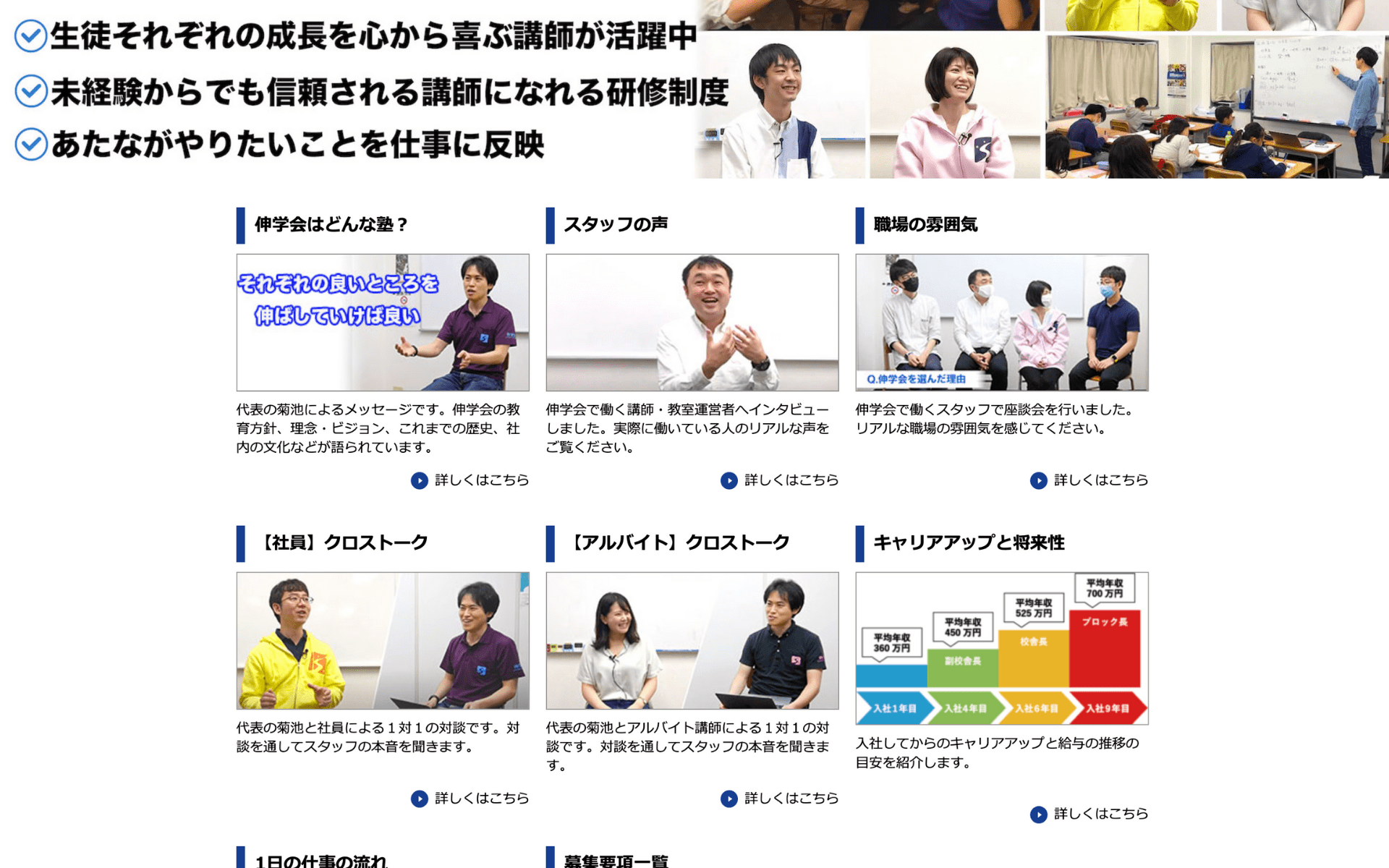 ホームページを通じて、当学習塾のサービスを広く紹介できるようになり、生徒と保護者に対して新しい形でアプローチできるようになりました。
